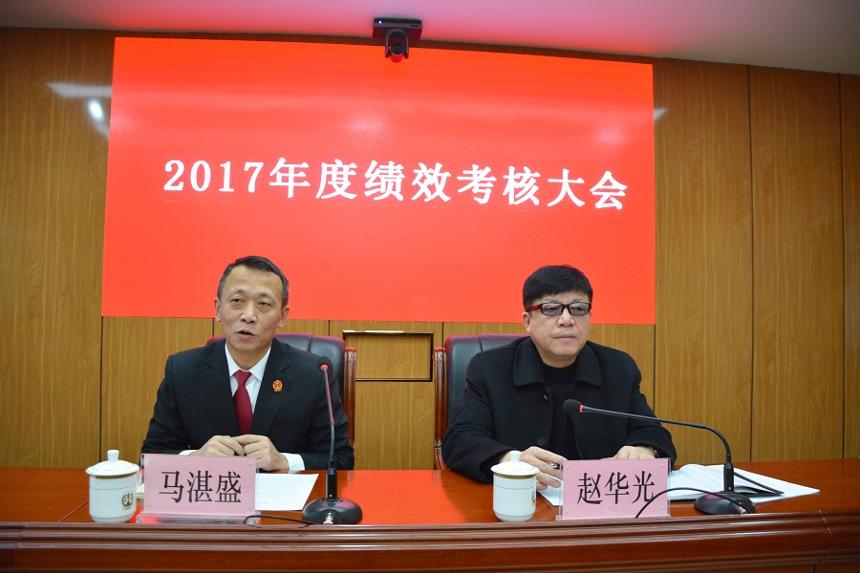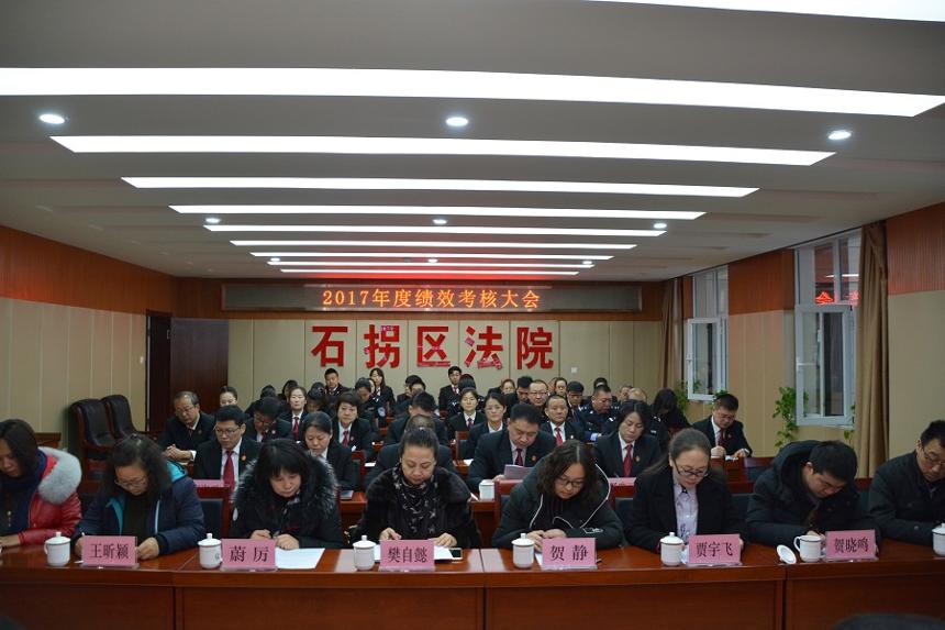 12月26日上午,市中院党组成员、政治处主任赵华光一行对石拐区法院2017年度目标实绩工作进行考核。区法院全体干警参加考核会议。